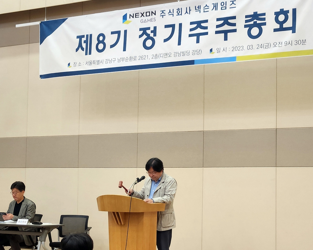 | ▲ 주주총회 진행하는 박용현 넥슨게임즈 대표 [촬영 김주환] |