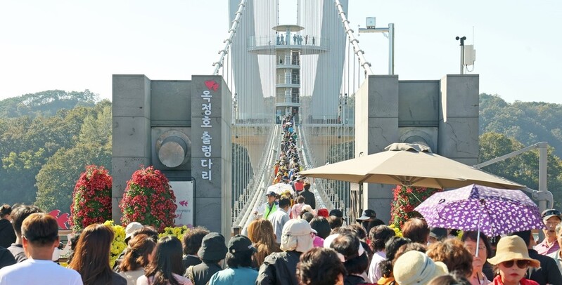 ▲ 관광객 몰린 옥정호 출렁다리 [임실군 제공. 재판매 및 DB 금지]