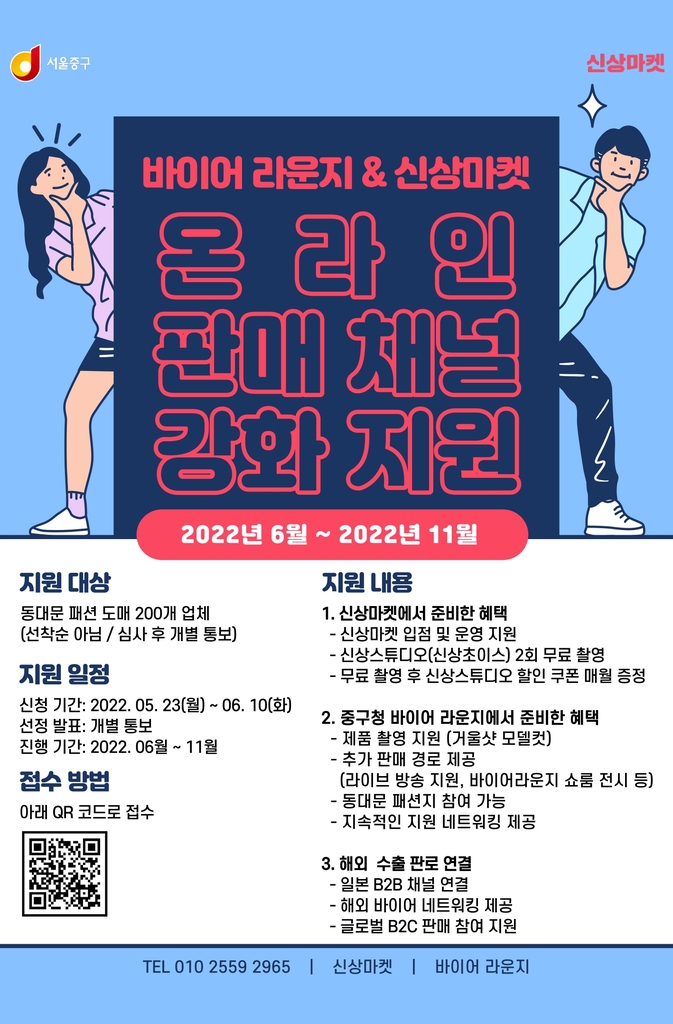 참여를 희망하는 업체는 다음 달 10일까지 안내포스터 상의 QR코드(https://naver.me/G7y04tJI)를 통해 신청서를 제출하면 된다. 동대문 상인이라면 누구나 신청할 수 있다.