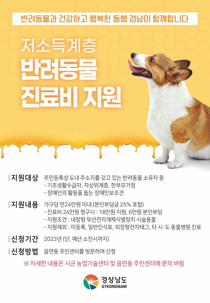 | ▲ 저소득계층 반려동물 진료비 지원 포스터 [경남도 제공. 재판매 및 DB 금지] |