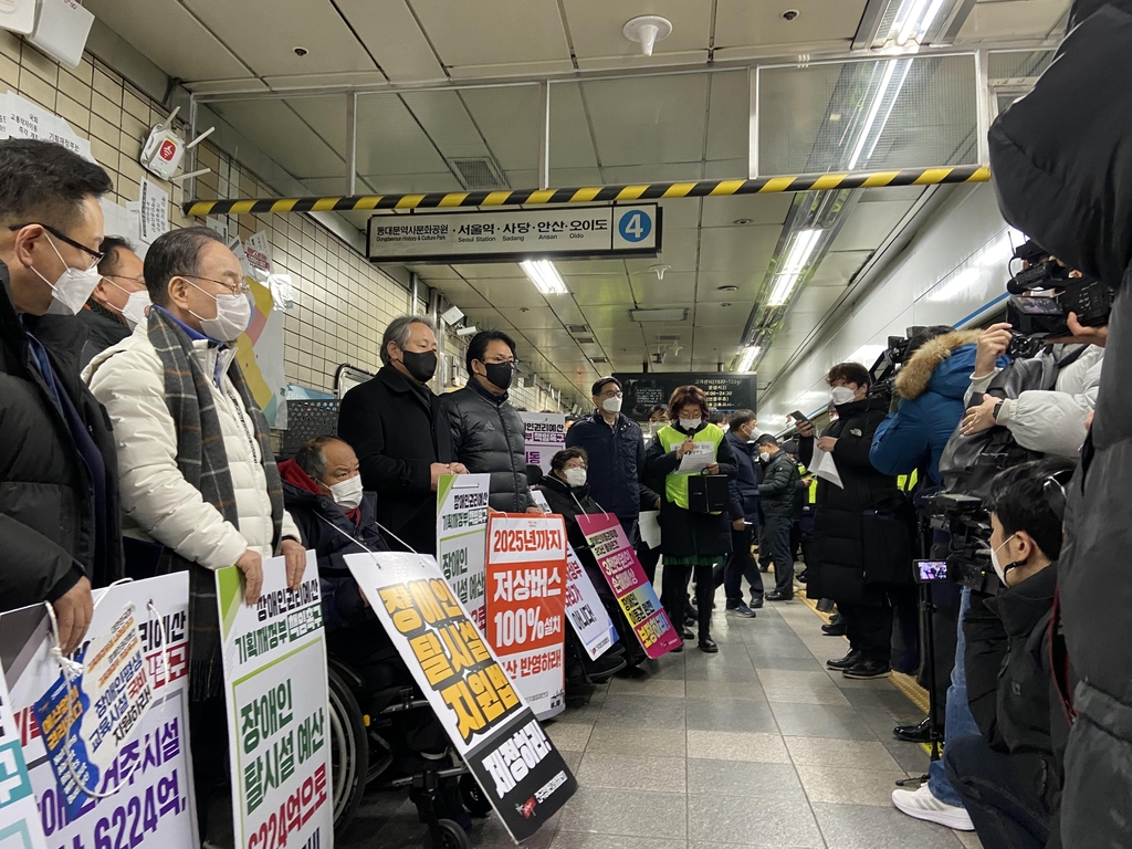 이들은 미리 배포한 성명에서 "우리와 함께 살아가는 장애인들이 영하 10도를 넘나드는 추위 속에서 이동권과 자립생활을 위한 관련 법 제정을 호소하고 있음을 목도하고 있다"며 "국회와 정부, 지자체가 이들의 목소리에 귀 기울일 것을 촉구한다"고 밝혔다.