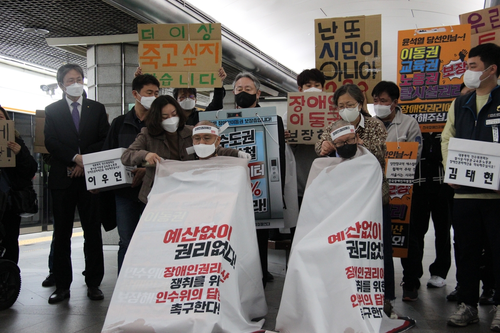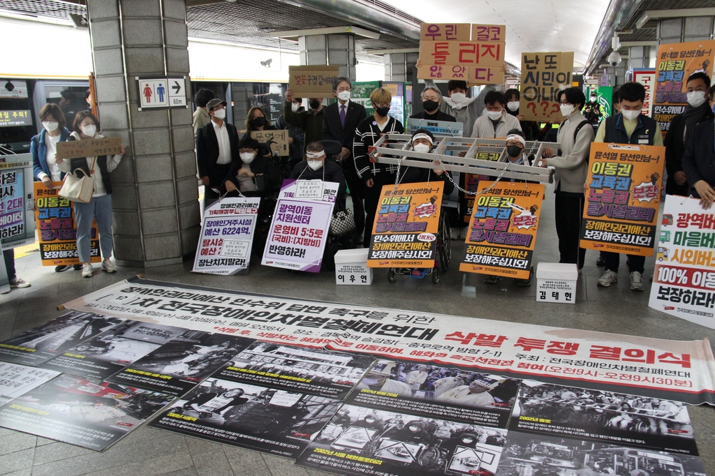 이어 "국가적 책임을 방기하는 정치인이 있어서는 안 된다"며 "21년간 이동권 자유를 얻기 위해 우리를 대신해 고난의 십자가를 지고 온, 그래서 혐오와 차별과 배제의 대상으로 때때로 전락하며 고통받아온 장애인이야말로 우리 사회를 문명사회로 끌어낸 장본인"이라고 주장했다.