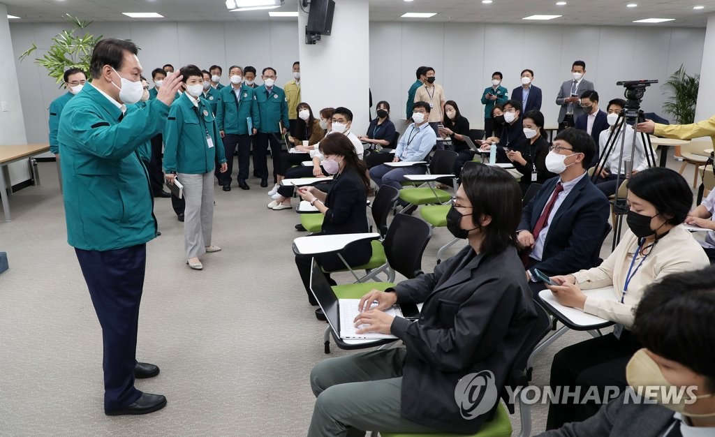 At 5 a.m. Tuesday, Yoon returned to the national crisis management center at the presidential office to monitor the typhoon's path for 30 minutes. The typhoon was making landfall in Geoje at the time.