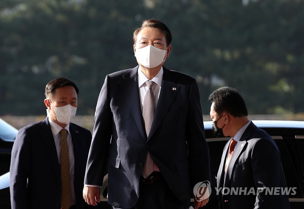 | ▲ President Yoon Suk-yeol arrives at the presidential office in Seoul on Oct. 20, 2022. (Pool photo) (Yonhap) |