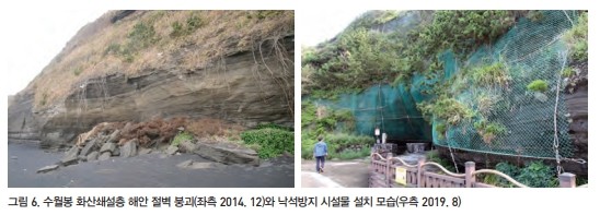 | ▲ 수월봉 화산쇄설층 사면 사면 붕괴 모습(왼쪽) [문화재청 제공. 재판매 및 DB 금지] |