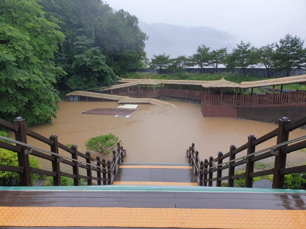 동굴 입구도 물에 완전히 잠겨 보이지 않는 상태이며, 관리동도 침수됐다.