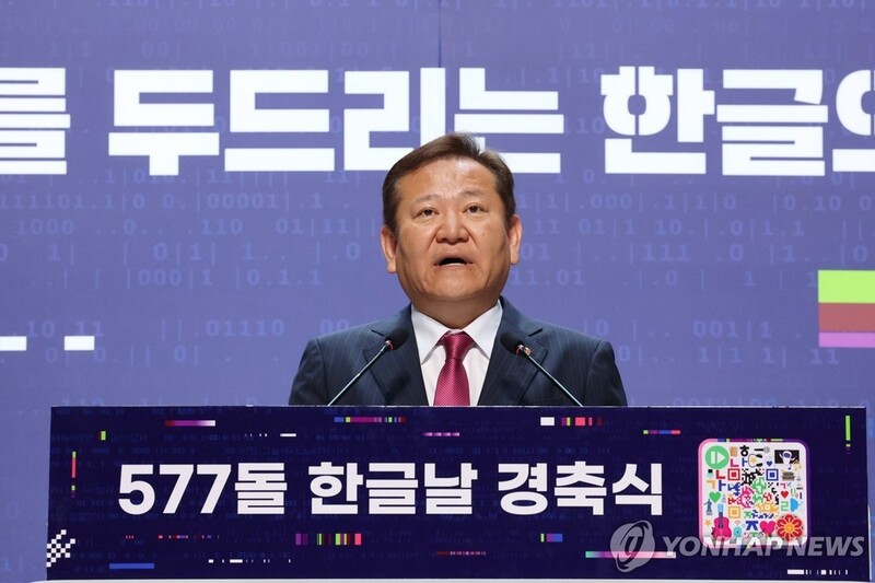 해외 순방 중인 한덕수 국무총리는 이상민 행안부 장관이 대독한 축사를 통해 "AI(인공지능) 시대를 이끌어 나갈 세계인의 언어가 바로 한글이 될 것으로 기대한다"며 "한글이 디지털 시대에 가장 적합한 문자로 평가받고 있다"며 밝혔다.