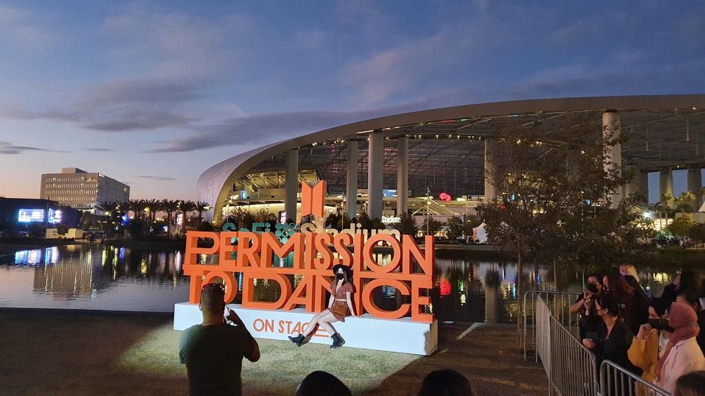 소파이 스타디움 부지 한쪽에 공연명을 따 마련된 '퍼미션 투 댄스'(Permission To Dance) 조형물도 큰 인기를 누렸다. 이곳에서는 공연장을 찾았다는 '인증샷'을 남기려는 팬들로 인산인해를 이뤘다.