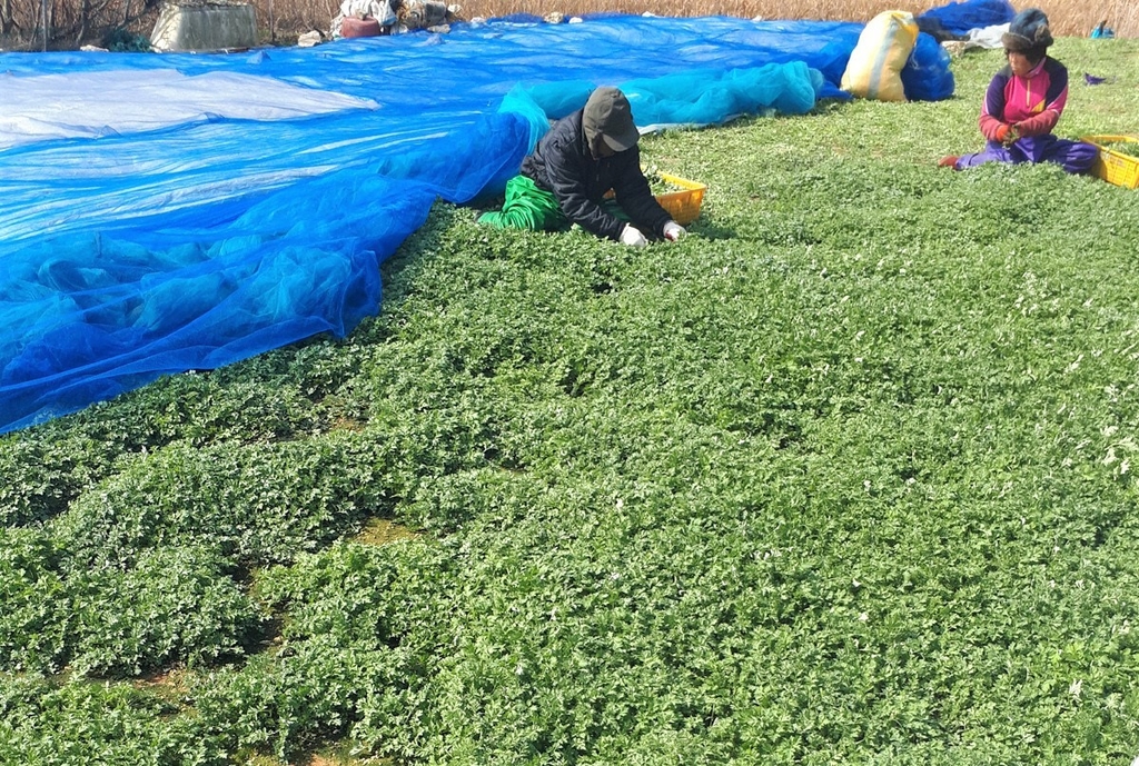 (진도=연합뉴스) 조근영 기자 = 봄기운이 가득한 전남 진도 조도 쑥 수확이 한창이다.