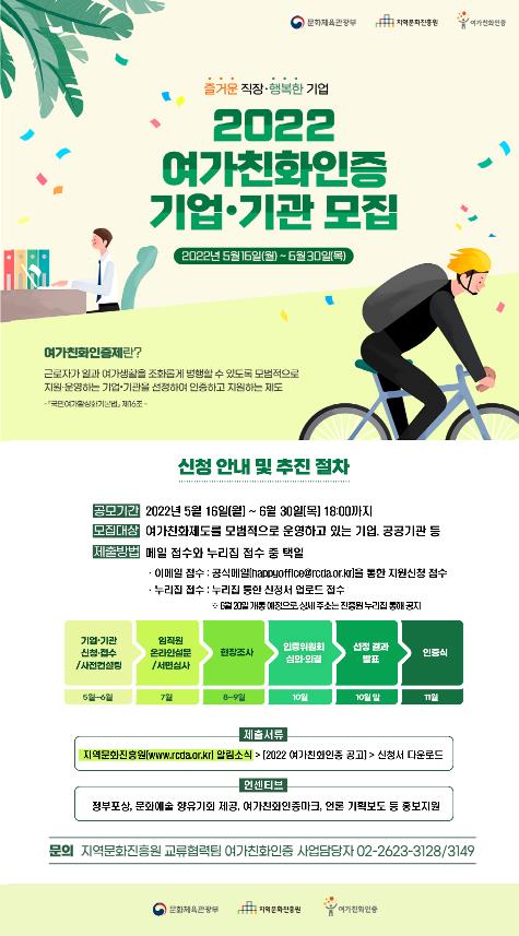 | ▲ '2022 여가친화인증 기업·기관 모집' 포스터 [문화체육관광부 제공] |