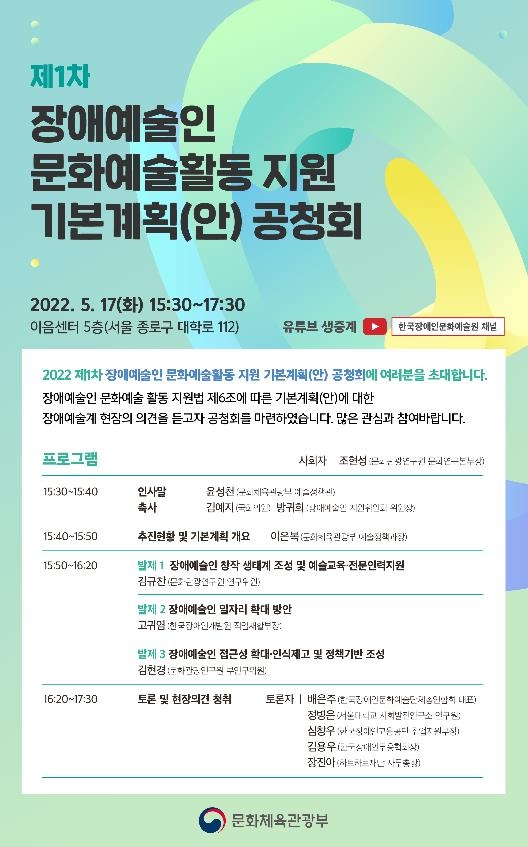 | ▲ 장애예술인 문화예술활동 지원 기본계획(안) 공청회 포스터 [문화체육관광부 제공] |