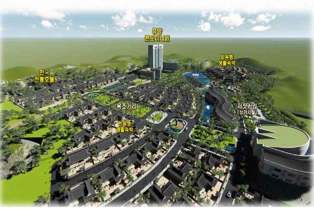 업체 측은 2023년까지 23만5천여㎡ 부지에 조선 시대 한양 사대문 안팎을 형상화한 한옥 호텔과 한옥 리조트, 저잣거리, 현대식 콘도미니엄 등 724객실 규모의 체류형 관광단지를 조성할 계획이다.
