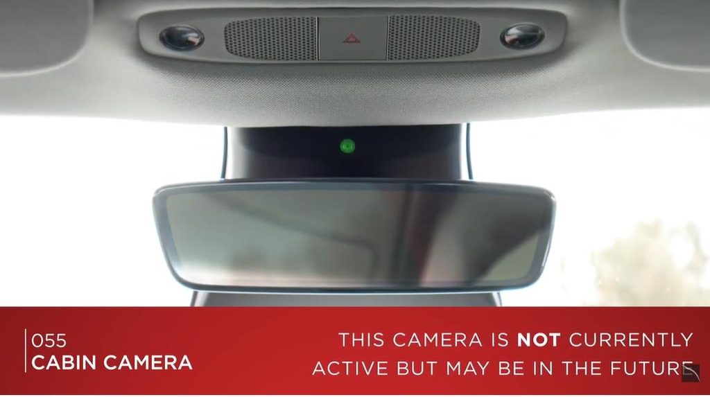 테슬라 룸미러(실내 후사경) 위에 달린 이 카메라는 운전자 시선 등을 촬영해 전방을 주시하지 않는 등 부주의한 운전을 한다고 판단할 경우 경고음을 낸다.