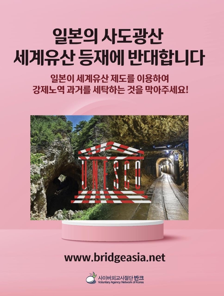 반크는 사도 광산 등재가 왜 잘못된 것인지를 알리는 '일본의 사도 광산 세계유산 등재에 반대합니다'라는 제목의 글로벌 청원(www.bridgeasia.net)도 제기했다.