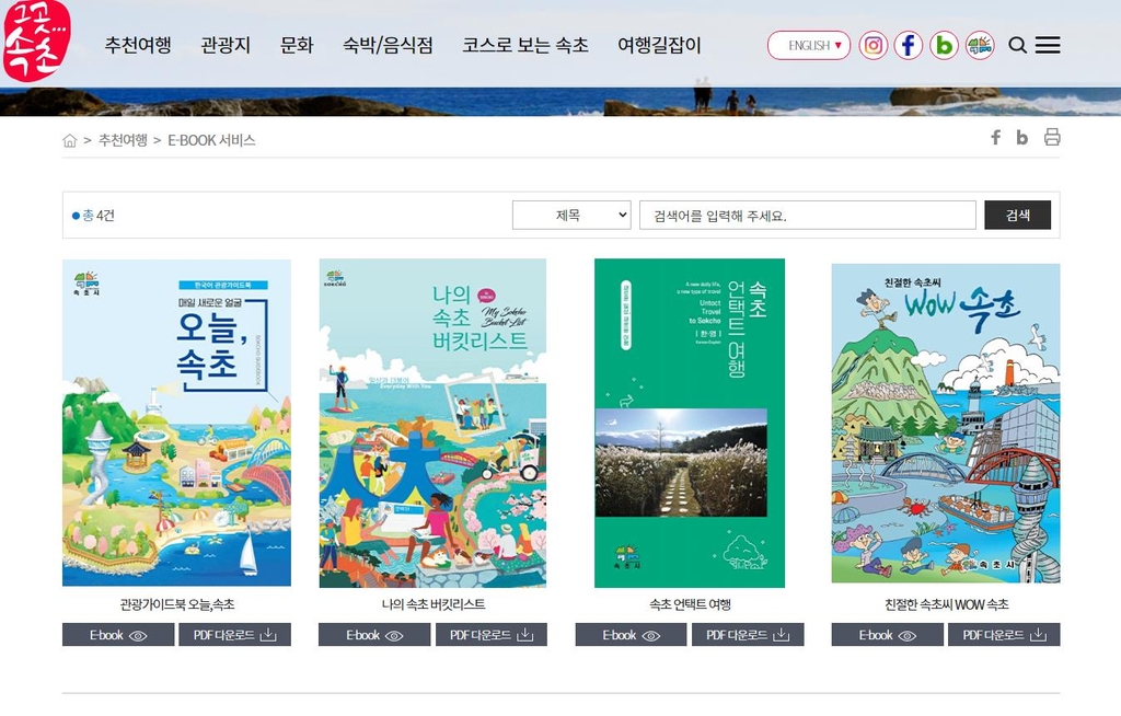 앞서 속초시는 지난해 7월 전자책(E-Book) 서비스를 통해 속초 관광 관련 다양한 정보를 한눈에 볼 수 있도록 먹거리, 볼거리 등 다양한 주제의 서비스 제공을 시작했다.