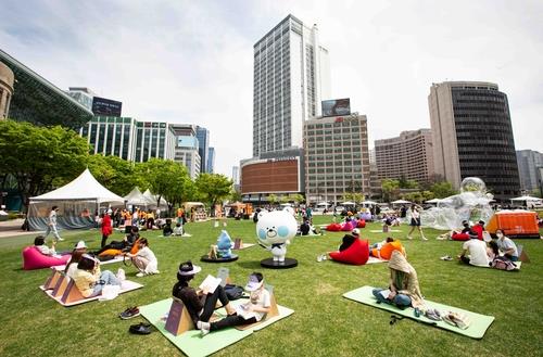 The monthlong program, "Stroll through Literature on the Grass," will bring together several popular novelists, writers and citizens each Friday and Saturday during the month for a book talk on the grass of Seoul Plaza in front of Seoul City Hall in central Seoul, according to the city officials.