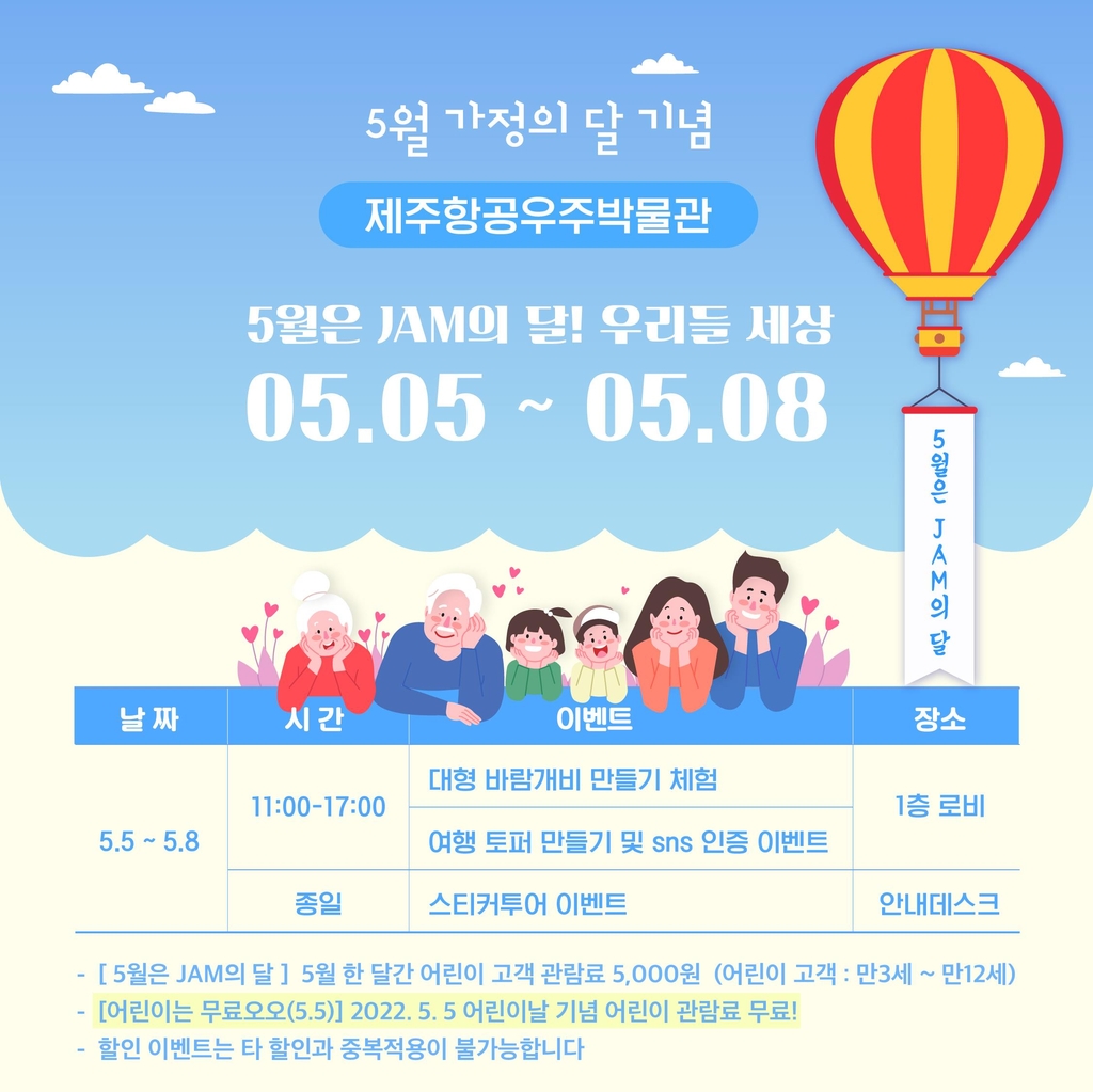 제주항공우주박물관은 오는 5∼8일 가정의 달 기념 이벤트를 실시한다.