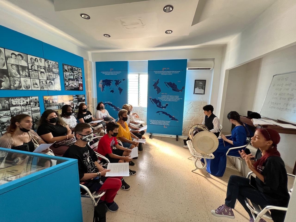| ▲ 한국 민요 배우는 쿠바인들 (아바나=연합뉴스) 주멕시코 한국문화원이 12일(현지시간) 쿠바 아바나에서 개막한 '한국문화 돋움제'에서 현지인들이 한국 민요를 배우고 있다. 2022.8.13. [주멕시코 한국문화원 제공] |