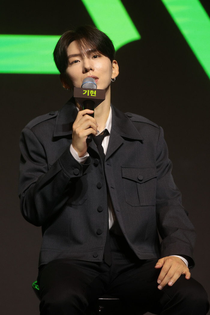 Kihyun, a member of South Korean boy group Monsta X, speaks during a publicity event in Seoul on July 16, 2025, to mark the group's 10th anniversary of its debut. (Yonhap)