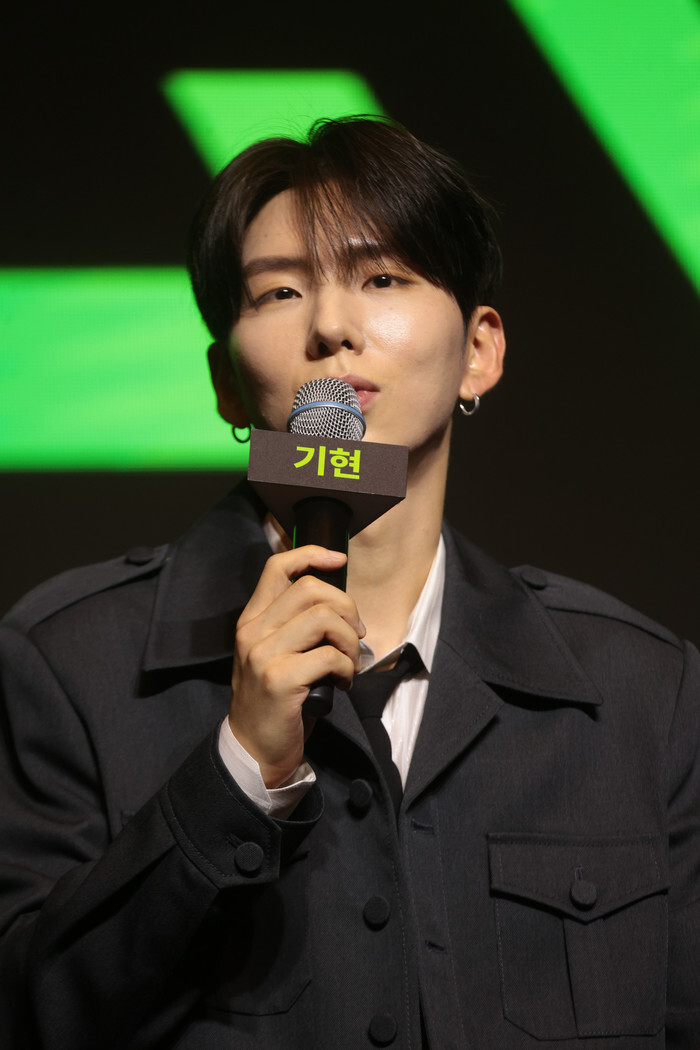 Kihyun, a member of South Korean boy group Monsta X, speaks during a publicity event in Seoul on July 16, 2025, to mark the group's 10th anniversary of its debut. (Yonhap)