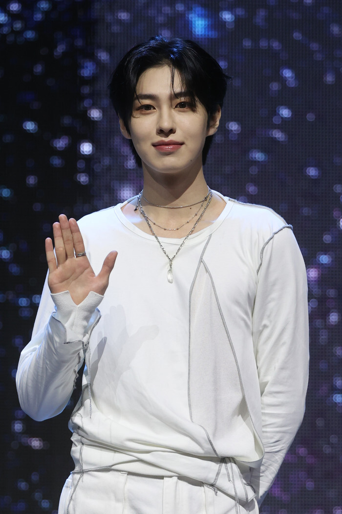 Aiden, a member of South Korean boy group Epex, poses for a photo during a showcase in Seoul on Nov. 5, 2024, to promote the release of the group's second album "Youth Chapter 2 : Youth Deficiency." (Yonhap)