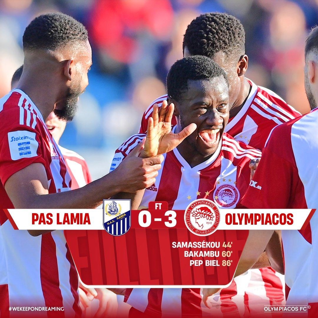 리그 최하위 팀인 라미아를 상대한 올림피아코스는 전반 44분 디아디 사마세쿠의 선제골로 앞서 나갔고, 후반 15분 세드리크 바캄부가 추가 골을 넣었다.