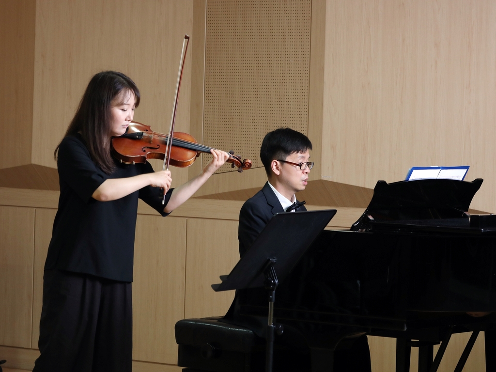 | ▲ 연습 중인 바이올리니스트 한지연(왼쪽)과 피아니스트 은성호 [미디어나무 제공. 재판매 및 DB 금지] |