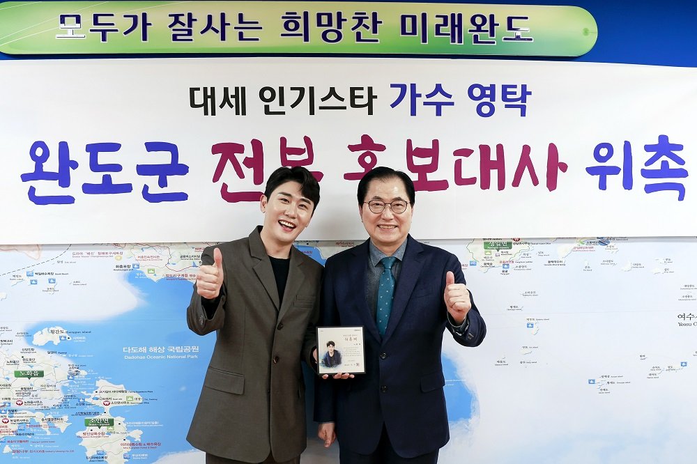 영탁은 앞으로 다양한 TV 예능·정보 프로그램에 출연해 완도 전복을 적극 알리는 홍보대사 역할을 할 것이라고 군은 전했다.