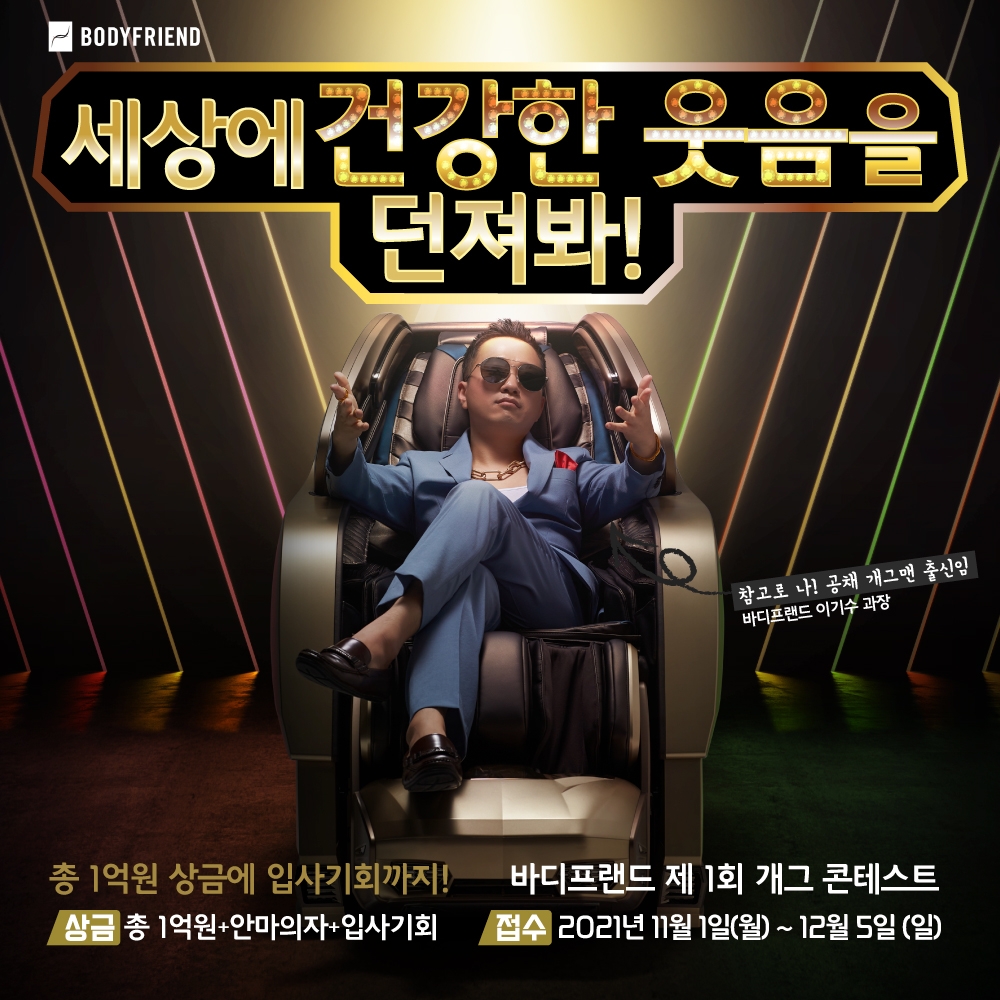 바디프랜드는 다음 달 5일까지 '제1회 개그 콘테스트' 참가 신청을 받는다고 9일 밝혔다.