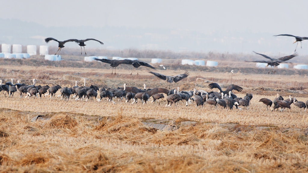 | ▲ 서산 천수만 찾은 천연기념물 흑두루미 [서산시 제공. 재판매 및 DB 금지] |