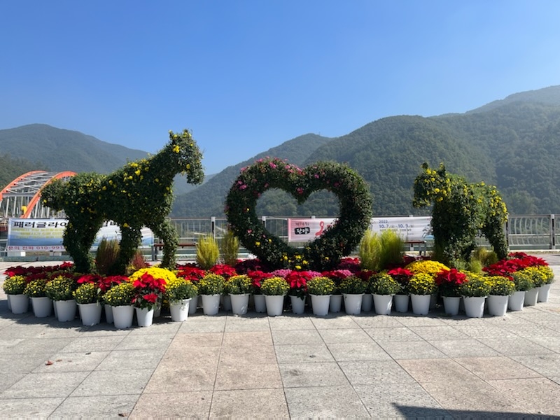 그 주변은 국화 등 8종 8천520그루의 꽃이 가득 채워 사람들의 눈길을 사로잡는다.