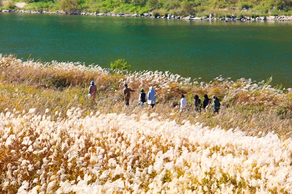 구불구불 고갯길이 붉고 노란 물감으로 수 놓이고, 강변에서는 푸르른 물빛과 경쟁이라도 하듯 은빛 갈대 물결이 넘실댄다.