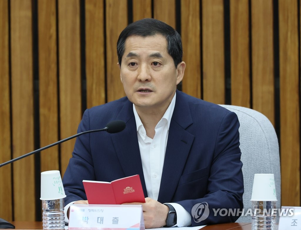 | ▲ Rep. Park Dae-chul, the ruling People Power Party's chief policymaker, addresses a meeting with the government on Aug. 2, 2023. (Yonhap) |