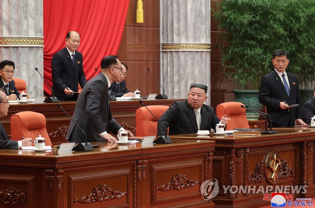 | ▲ North Korean leader Kim Jong-un (C) attends the last session of the seventh plenary meeting of the eighth Central Committee of the Workers' Party of Korea in Pyongyang on March 1, 2023, to discuss rural issues, in this photo released by the North's Korean Central News Agency the following day. Kim called on all farms across the country to step up their grain production and meet their goals for this year "without fail." (For Use Only in the Republic of Korea. No Redistribution) (Yonhap) |