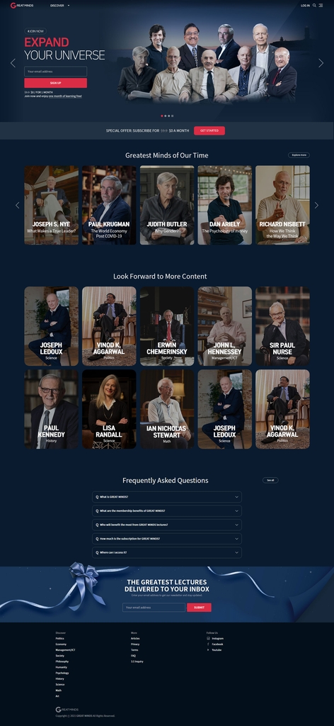 '그레이트 마인즈'는 노벨 경제학상 수상자 폴 크루그먼, '정의란 무엇인가'의 저자 마이클 샌델 등 유명 지식인들의 강연을 담은 시사교양 프로그램이다.