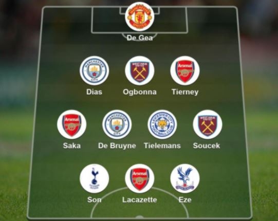 미드필더로는 토마시 수첵(웨스트햄), 유리 틸레만스(레스터시티), 케빈 더브라위너(맨체스터 시티), 부카요 사카(아스널)가, 수비수로는 키런 티어니(아스널), 안젤로 오그본나(웨스트햄), 후뱅 디아스(맨체스터 시티)가 이름을 올렸다.