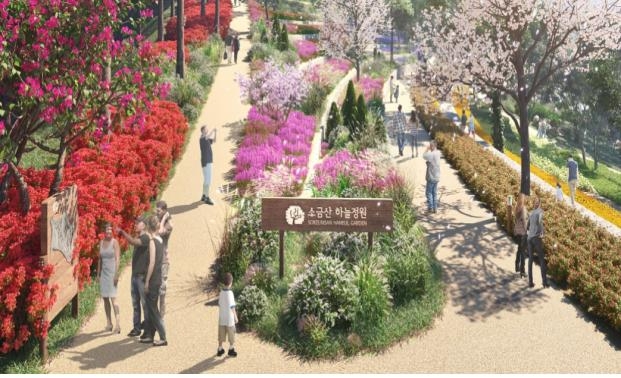 계단식 정원을 활용한 하늘정원은 사계절 꽃이 피는 아름다운 정원으로 나무와 꽃, 새소리, 물소리가 어우러져 관광객에게 힐링을 선사한다.