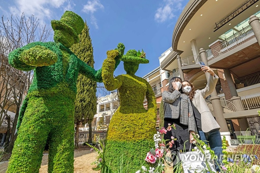 | ▲ 신세계사이먼 프리미엄 아울렛 봄맞이 VMD 조성 (서울=연합뉴스) 신세계사이먼 프리미엄 아울렛이 봄을 맞아 시흥·파주·부산점 야외 공간을 '토피어리 가든' 및 '유채꽃 정원' 등의 특색있는 VMD(VISUAL MERCHANDISER로 조성했다고 23일 밝혔다. 사진은 신세계사이먼 파주 프리미엄 아울렛 중앙광장에 조성된 토피어리 가든(TOPIARY GARDEN). 2022.3.23 [신세계사이먼 제공. 재판매 및 DB 금지] photo@yna.co.kr |