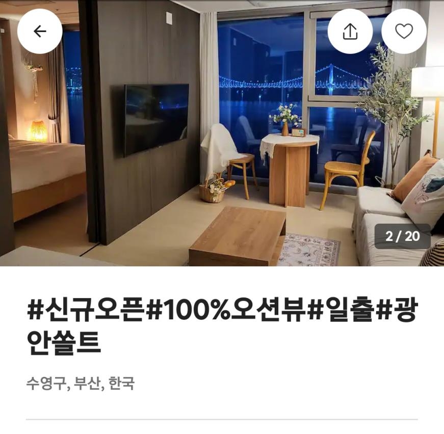 | ▲ 에어비엔비에 올라온 광안리 지역 불법 공유숙박 에어비엔비 갈무리. 재판매 및 DB 금지[ |