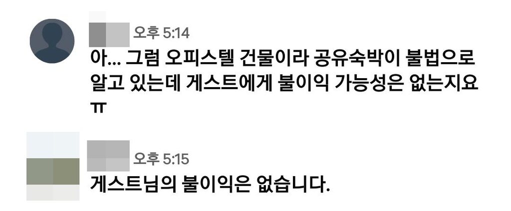 | ▲ 불이익이 걱정된다는 질문에 게스트 불이익은 없다는 에어비엔비 호스트 [독자 제공. 재판매 및 DB금지] |
