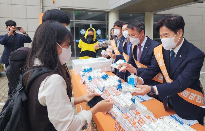이들은 3천여 개의 가래떡과 우유를 나눠 주며 농업인의 날과 가래떡 데이를 꼭 기억하고 쌀 소비 확대에 동참해 줄 것을 홍보했다.