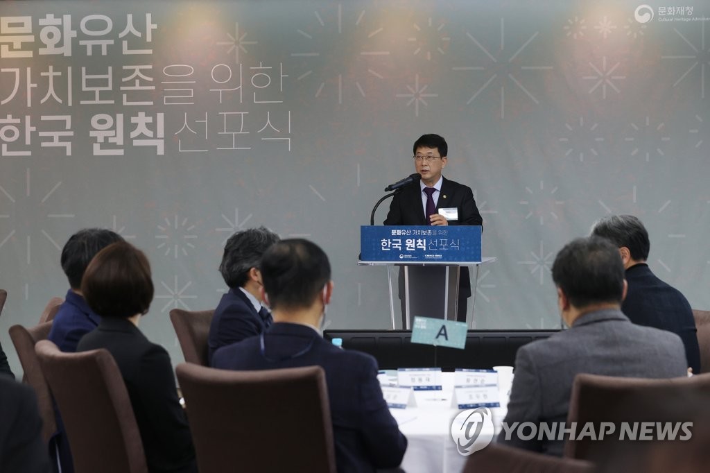 문화재청은 국제기념물유적협의회(ICOMOS·이코모스) 한국위원회, 한국전통문화대와 함께 20일 서울 중구 한국의집에서 '문화유산 가치 보존을 위한 한국 원칙' 선포식을 열었다.