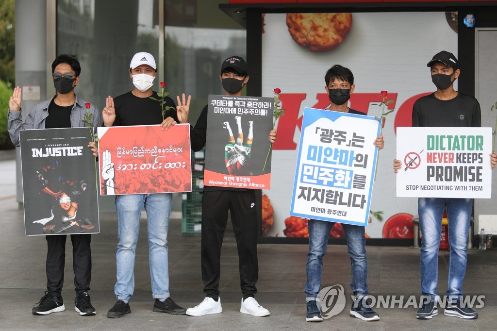 | ▲ Activists stage a protest supporting the pro-democracy movement in Myanmar in Gwangju, 329 kilometers south of Seoul, on Aug. 7, 2022. (Yonhap) |