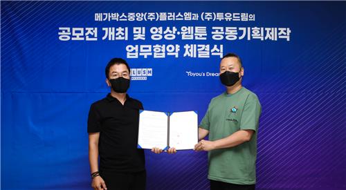 ▲ 메가박스중앙플러스엠-투유드림 MOU = 배급사 메가박스중앙플러스엠은 지난 12일 웹툰 제작사 투유드림과 업무협약(MOU)을 맺고 공모전 개최, 콘텐츠 기획·개발을 함께 하기로 했다.