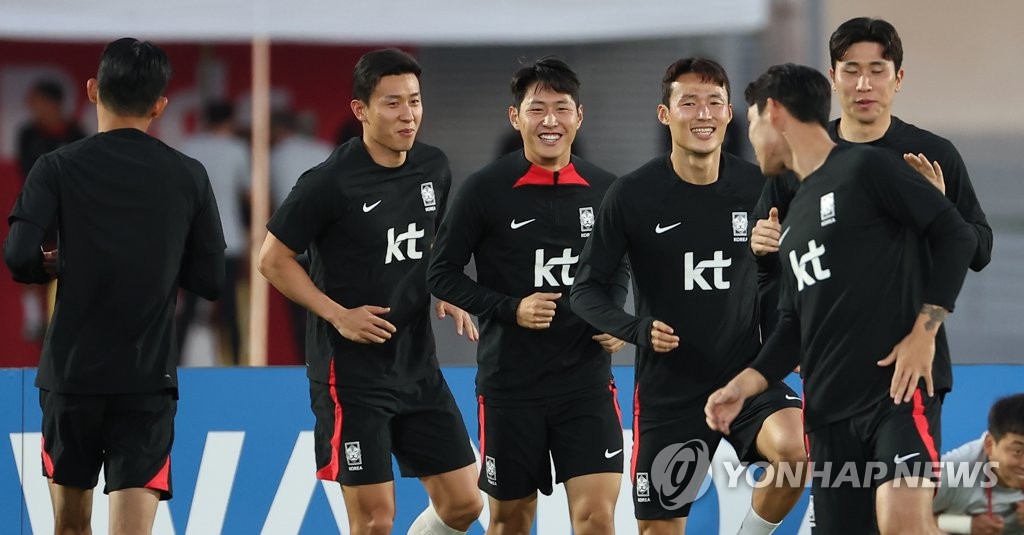 | ▲ 밝은 분위기의 대표팀 (도하=연합뉴스) 임헌정 기자 = 우루과이와의 2022 카타르 월드컵 조별예선 1차전을 마친 대한민국 대표팀 선수들이 25일(현지시간) 카타르 도하 알에글라 훈련장에서 밝은 표정으로 다음 가나전을 대비해 훈련하고 있다. 2022.11.25 kane@yna.co.kr |
