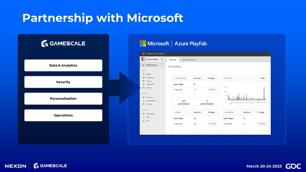 (서울=연합뉴스) 김주환 기자 = 넥슨이 자체 게임 데이터 분석 솔루션인 '게임스케일'을 마이크로소프트(MS)의 게임 개발 지원 플랫폼 '플레이팹'에 지원한다고 발표했다.