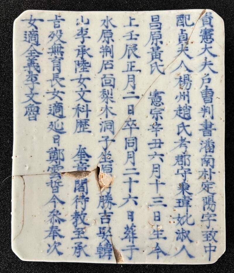 | ▲ 백자청화정부인양주조씨묘지 [문화재청 제공. 재판매 및 DB 금지] |