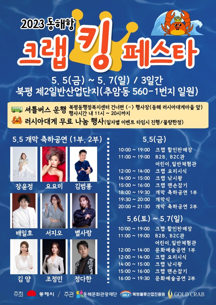 (동해=연합뉴스) 유형재 기자 = '2023 동해항 크랩킹 페스타'가 어린이날인 5일부터 7일까지 북평 제2 일반산업단지(러시아대게마을 일원)에서 열린다.