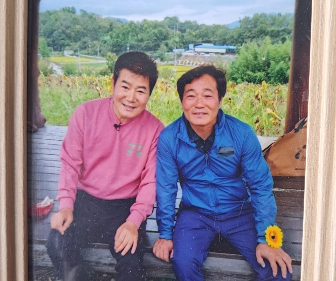 | ▲ 조철래 함안 강주해바라기축제위원장 (함안=연합뉴스) 조철래 함안강주해바라기축제위원장(오른쪽)이 2022년 축제 배경이 된 함안군 법수면에서 촬영한 사진. 왼쪽은 트로트 가수 진성이다. 2023.7.3 [조철래 위원장 제공. 재판매 및 DB 금지] |