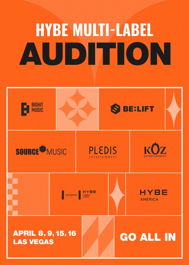 The Hybe Multi-label Audition will take place four times in Las Vegas on April 8-9 and 15-16 (U.S. time), Hybe said.